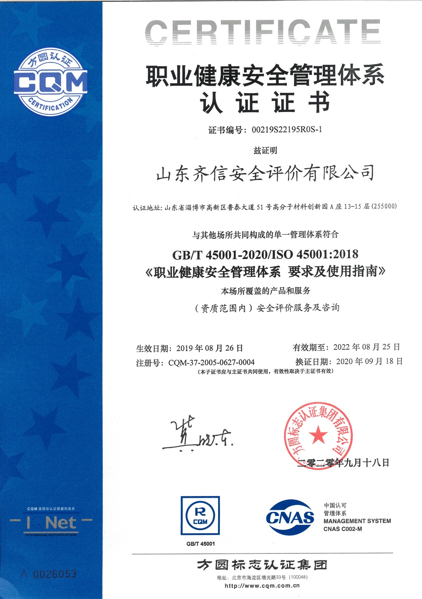 山東齊信安全評價有限公司成立于2005年3月,注冊資本300萬元人民幣,固定資產(chǎn)總值804.8728萬元。法定代表人徐光明,注冊地址及辦公地址位于淄博高新區(qū)魯泰大道51號高分子材料創(chuàng)新園A座13-15樓。2005年9月取得安全評價機構(gòu)乙級資質(zhì)。自國家應急部1號令實施以來,公司于2020年1月15日取得新安全評價資質(zhì),業(yè)務(wù)范圍包括:陸上油氣管道運輸業(yè);石油加工業(yè),化學原料、化學品及醫(yī)藥制造業(yè);金屬冶煉。2018年12月21日取得安全生產(chǎn)標準化二級評審單位,評審范圍:危險化學品、紡織、建材、輕工、冶金、機械。 公司現(xiàn)有人員41人,其中專職安全評價師37人,注冊安全工程師26人,研究員1人、碩士5人、雙學士1人,山東省安全專家?guī)鞂<?人、教授級高工1人,高級工程師8人、工程師22人,專職危險化學品標準化評審員、工商貿(mào)標準化評審員30人,本科以上學